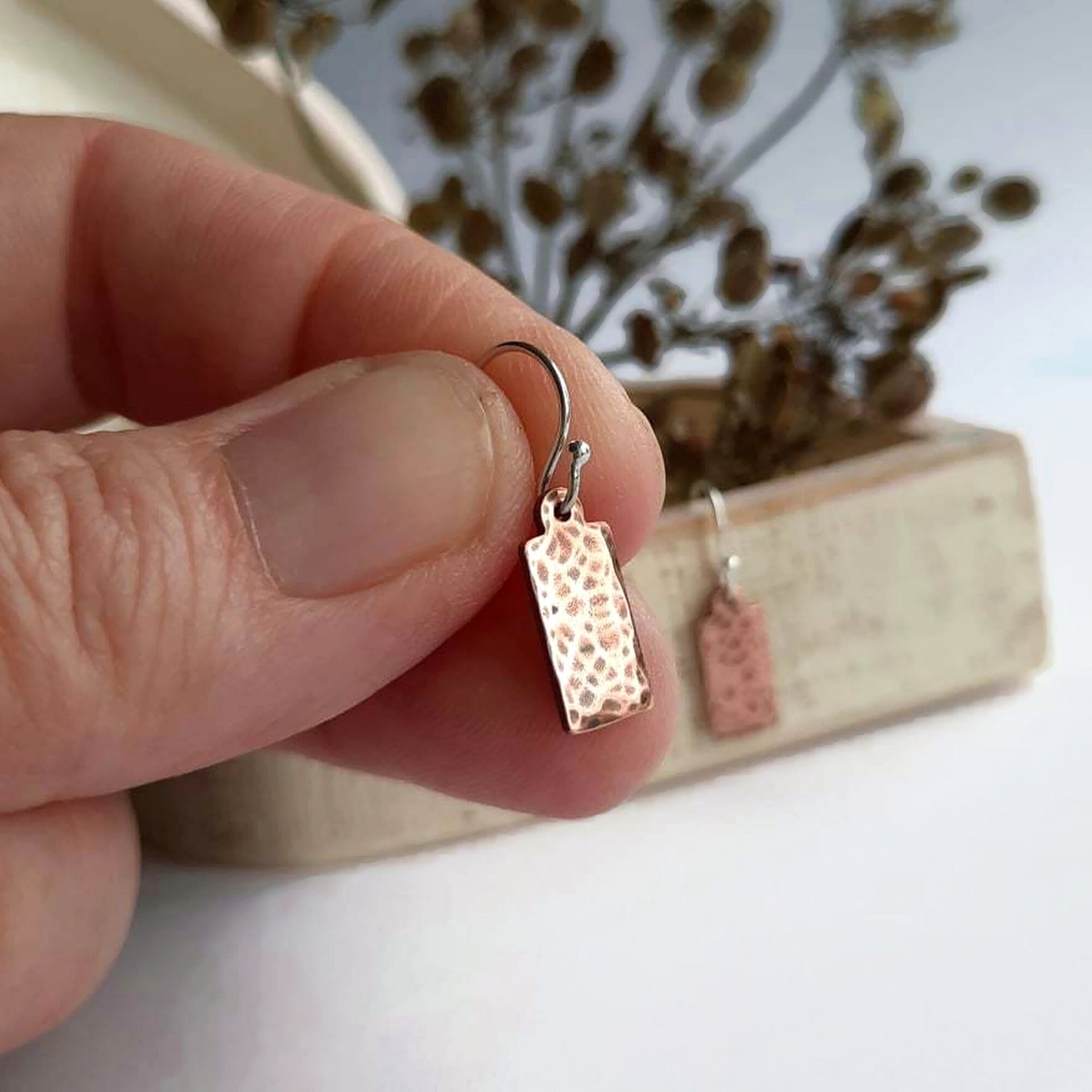 The copper rectangles hang from a pair of 925 sterling silver ear wires.