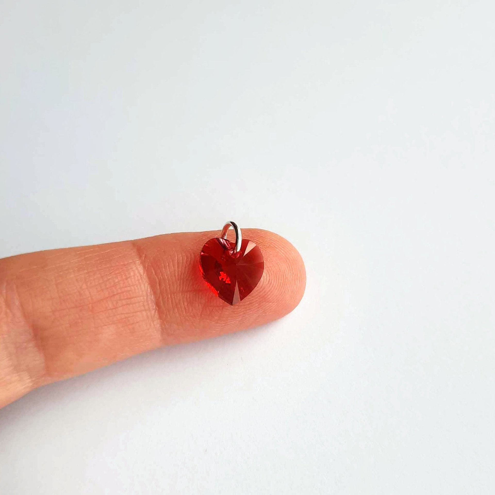 Scarlet Red Crystal Heart Charm ~ Silver, Gold or Rose Gold ~ 10mm