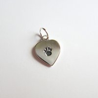 Why not make your jewellery extra special and personalise it with one or more of these sweet little heart shaped paw print charms? These charms are ideal for adding to a necklace or bracelet, or you can buy two and make a cute pair of drop earrings.