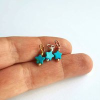 Cute, tiny little turquoise gemstone star beads are neatly and securely wire wrapped to create a dainty dangle charm ready for you to add to your own jewellery creations. This listing is for a single charm, allowing you to order the exact number you need.